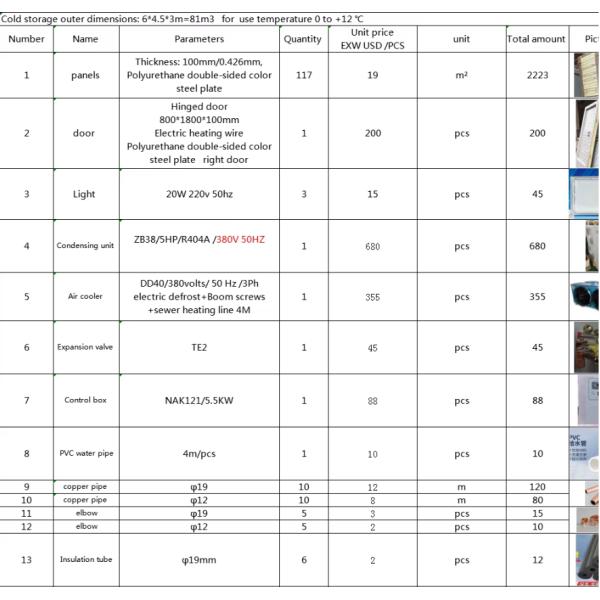 | 1 | panels | Thickness: 100mm/0.426mm, Polyurethane double-sided color steel plate |